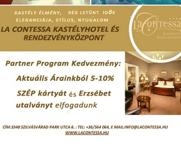 A szilvásváradi La Contessa Kastélyhotel (www.lacontessa.hu) eljuttatta hozzánk aktuális, kedvezményes ajánlatát tagjaink részére.
